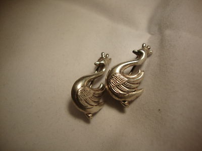 Pair of Antique Sterling Silver Pins Crowned Swans