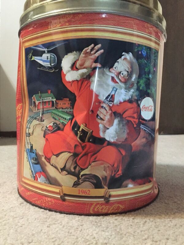 Title (ebay affiliate link): Coca-Cola Christmas Popcorn Tin w Battery Operated Train on Lid