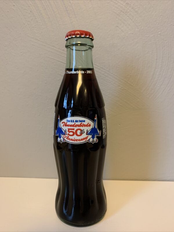 Title (ebay affiliate link): 2003 U.S AIR FORCE THUNDERBIRDS 50th ANNIVERSARY 8 OUNCE GLASS COCA COLA BOTTLE