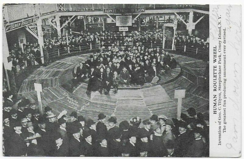 Title (ebay affiliate link): c. 1905 Human Roulette Wheel Steeplechase Park Coney Island NY Postcard