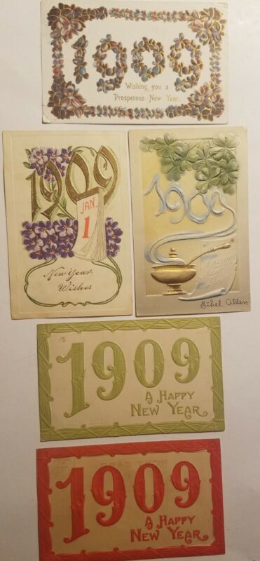 4 Vintage New Year''s 1909 Postcards - Made in Germany