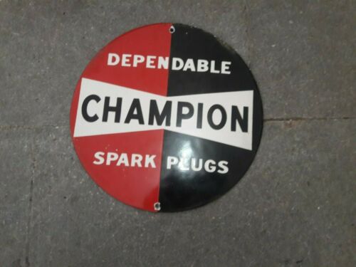 Porcelain Dependable Champion Spark Plugs Enamel Sign "10" Inches