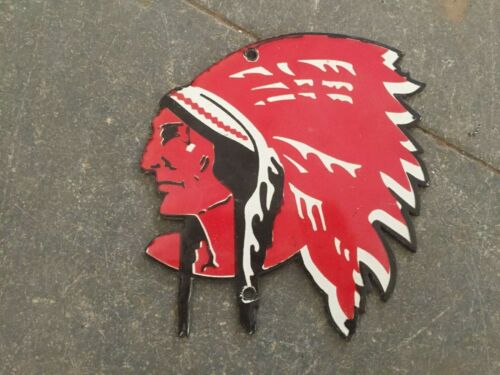 Porcelain Red Indian Enamel Sign SIZE 6" X 5.5" Inches