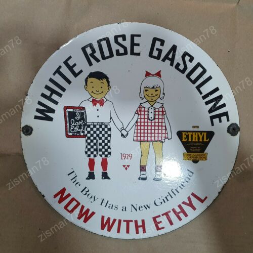 Title (ebay affiliate link): WHITE ROSE GASOLINE VINTAGE PORCELAIN SIGN 12 INCHES ROUND