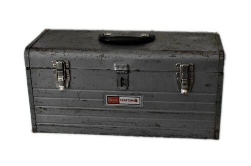 Vintage Sears 20" Craftsman Steel Metal Tool Box with red tray