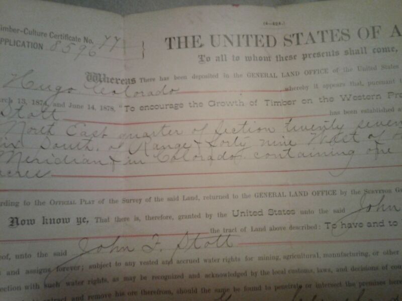 Title (ebay affiliate link): 1885 Grover Cleveland Timber Culture Application for Homesteader John F Stott.