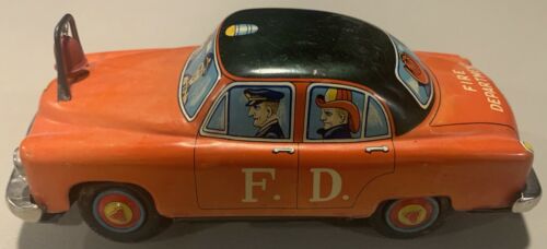 1950s BANDAI TIN FRICTION 7" FIRE DEPARTMENT CAR