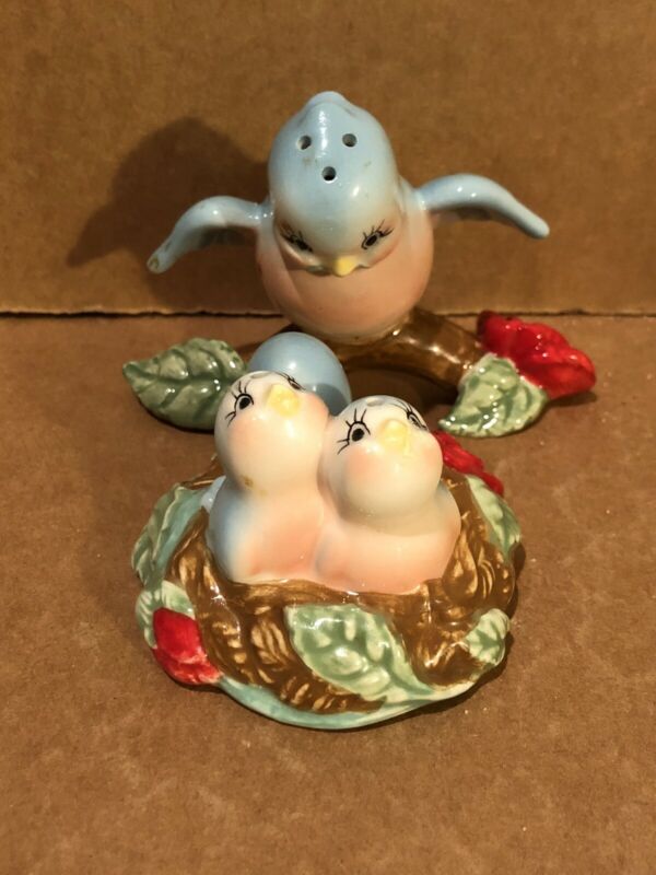 Title (ebay affiliate link): Collectible Bird Salt And Pepper Nest With Babies Blue Birds