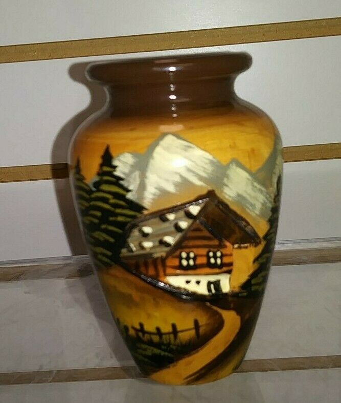 Title (ebay affiliate link): Vtg Wood Vase German Hand Carved /Turned Painted Black Forest Scene, 4 1/4"