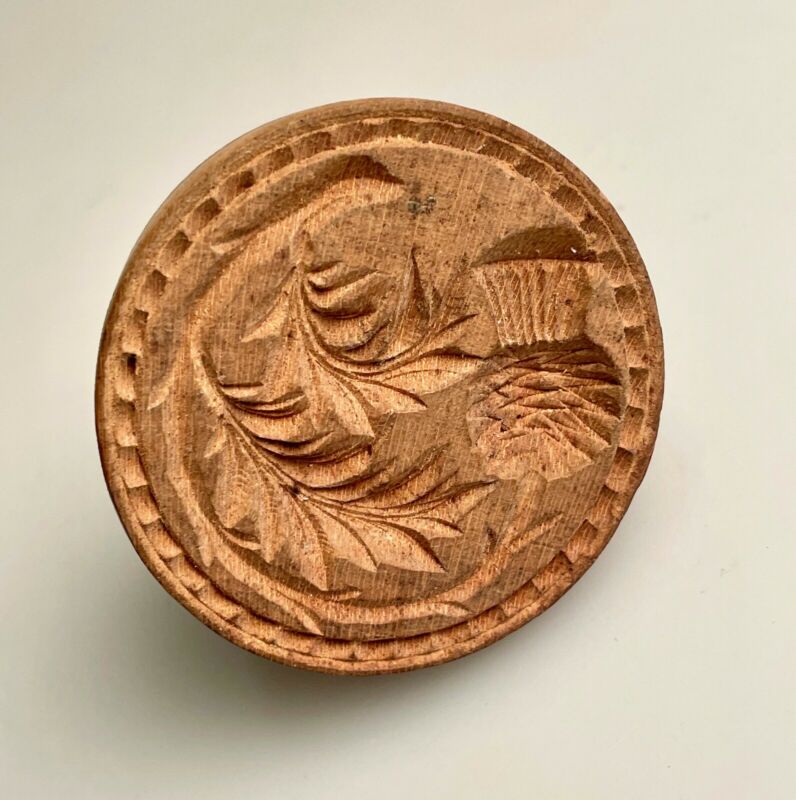 Antique Early American Wood Butter Mold Stamp Thistle Design
