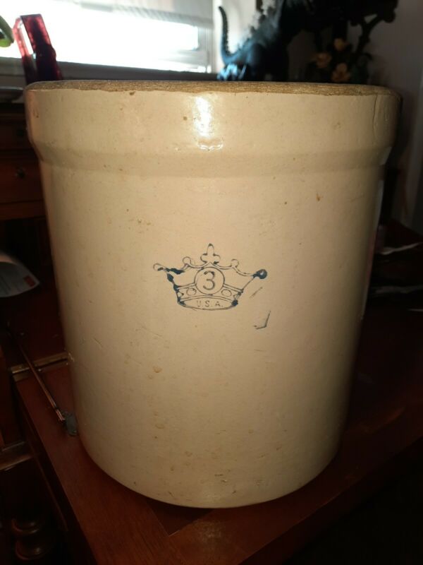 Vintage USA Robinson Ransbottom #3 Gallon BLUE CROWN Crock Stoneware