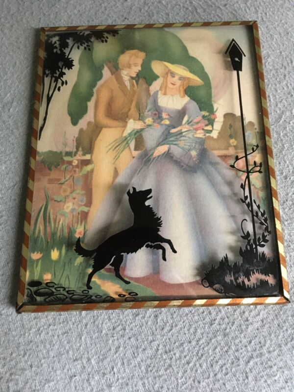 Vintage Silhouette Reverse Painted Convex Bubble Glass Pictures