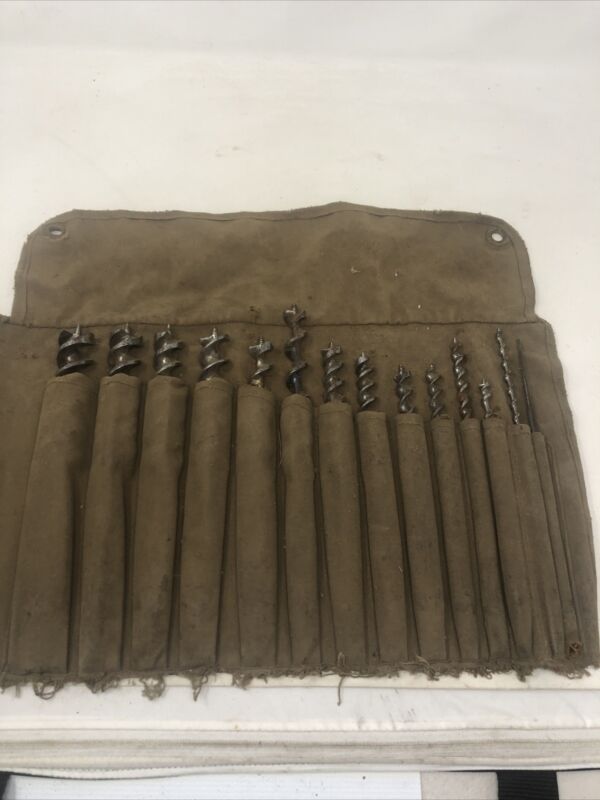 Antique RUSSELL JENNINGS DUNLAP Woodworking Auger Drill Bit Set 13 In All Estate