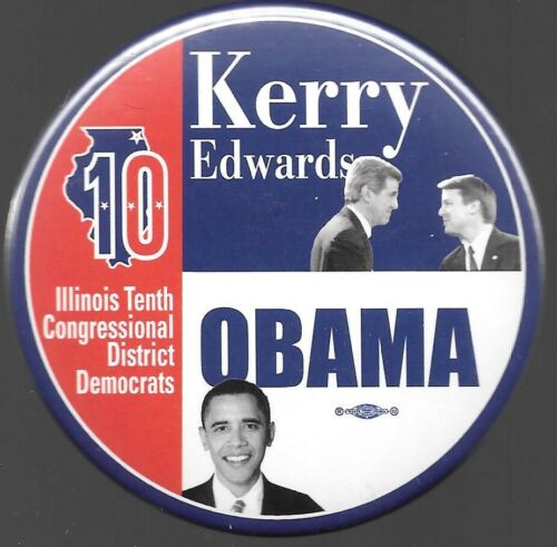 Title (ebay affiliate link): KERRY, EDWARDS, BARACK OBAMA ILLINOIS COATTAIL 2004 POLITICAL PIN