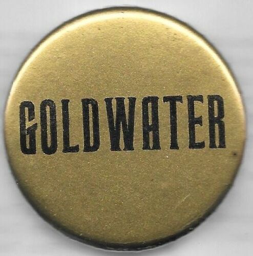 Title (ebay affiliate link): BARRY GOLDWATER GOLD AND BLACK, UNUSUAL LETTERING POLITICAL CAMPAIGN PIN