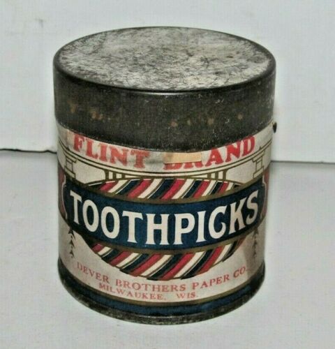 Title (ebay affiliate link): Vintage Flint Brand Toothpicks Dever Brothers Milwaukee Paper & Metal Tin