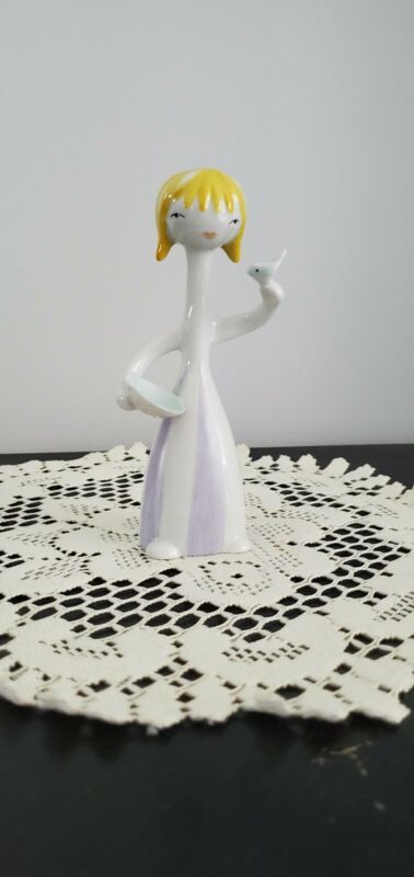Hollohaza Vintage Girl Bowl Bird Figurine Hungary 1831 22 Art Deco