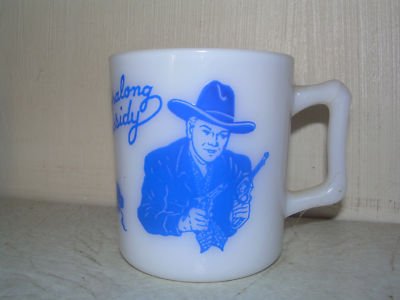 VINTAGE HOPALONG CASSIDY CUP BLUE ON MILKGLASS