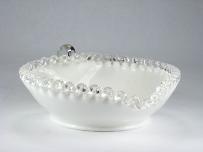 Vintage FENTON Silver Crest Milk Glass Relish Dish Bowl