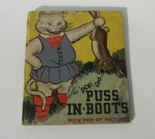 Title (ebay affiliate link): Vintage 1934 Litho Pop-up Book Puss In-boots 1st edition Blue Ribbon Fairy tales