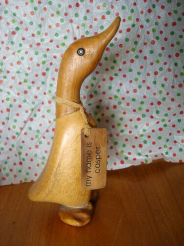 vintage wood dcuk duck, tag, my name is Casper, 8.5" tall EUC