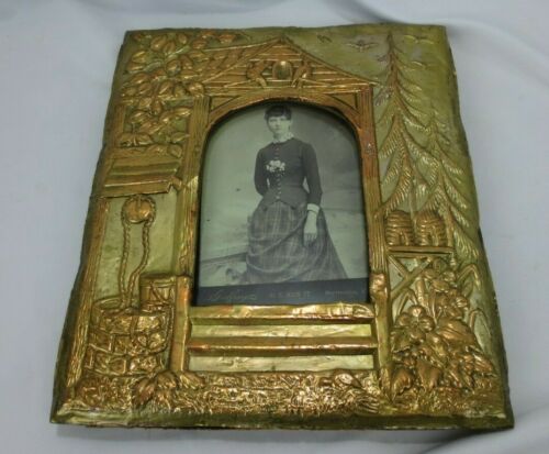 Title (ebay affiliate link): Antique 1885 Embossed Picture Frame w old photograph Electro Bronze 9" x 10.5"