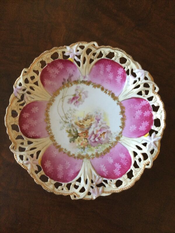 10†Antique Porcelain Plate with Cutout Edge