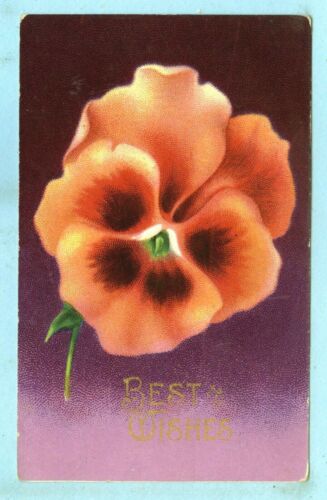 Vintage, "BEST WISHES", Big Yellowish/Redish Pansey...