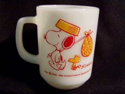 milkglass mug fire king fireking,snoopy,come home