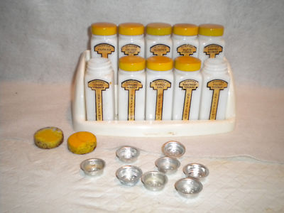 Vtg Griffiths Lab milk glass 10 jar spice paper labels