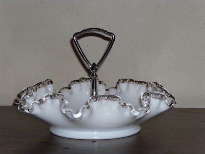Fenton Milk Glass Ruffled Edge Bon Bon Dish w/handle