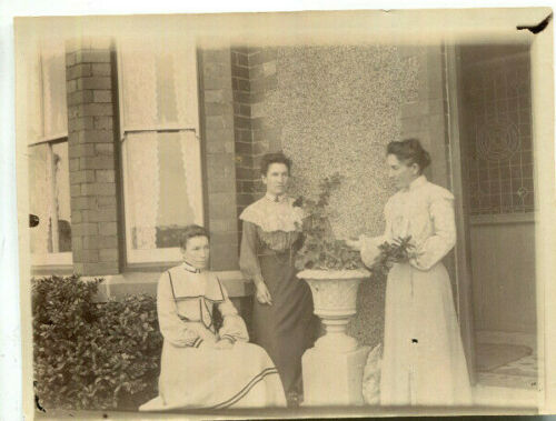 Title (ebay affiliate link): 1900s photograph Three ladies of fashion by a large planter