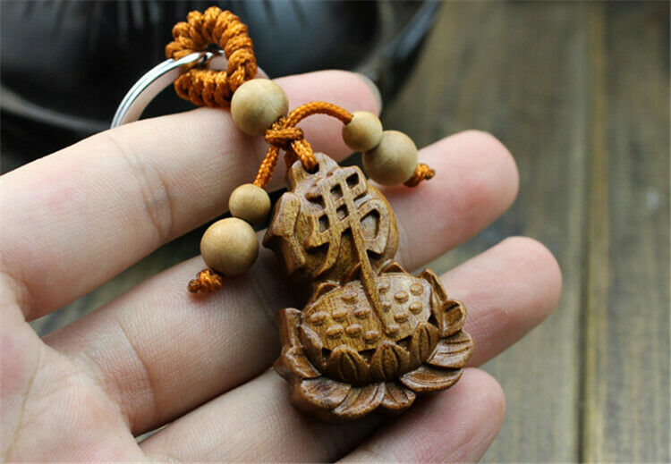 Title (ebay affiliate link): Wood Carving Chinese Buddha Lotus Buddhism Statue Sculpture Pendant Key Chain