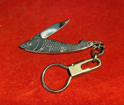 NEAT VINTAGE FISH SHAPED POCKET KNIFE WITH KEYCHAIN & MAKER MARK
