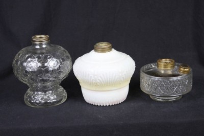 L347 LOT 3 VTG ANQITUE FONTS PATTERN MILK GLASS