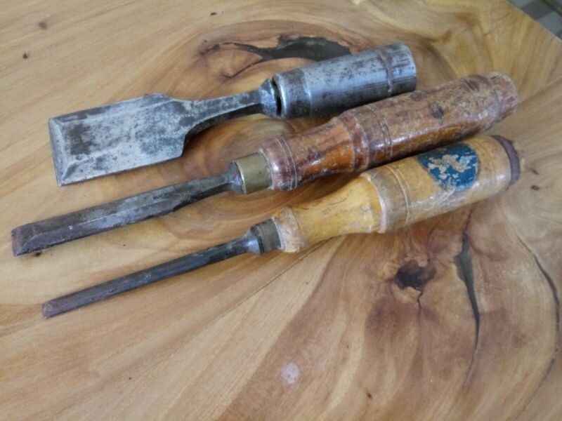 Title (ebay affiliate link): 3 Vintage Woodworking Chisels Buck Bro.