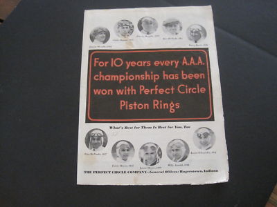 Perfect Circle Co. Ad for 1932 Indianapolis Speedway