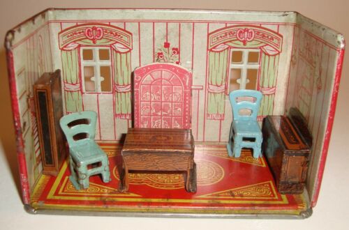 Vintage 1920s Marx Toy Newlyweds Tin Dollhouse Miniature Dining Room Furniture