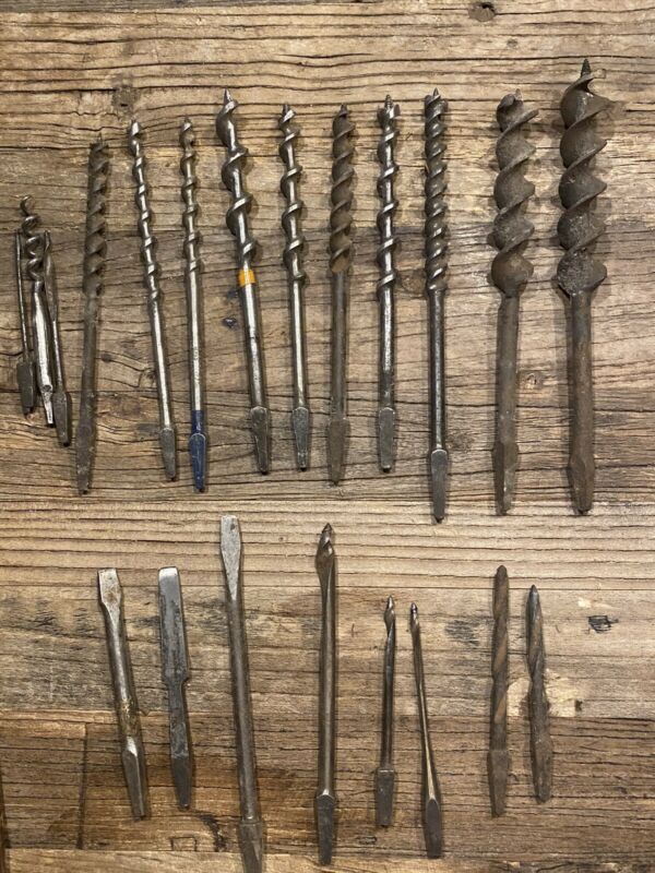 Title (ebay affiliate link): ANTIQUE LOT OF WOOD AUGER STEEL DRILL BITS & Others