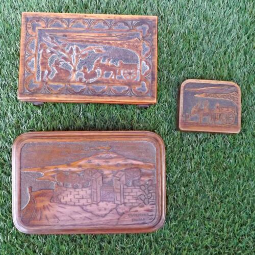 Collection 3 Carved Boxes Taormina Sicily 1944 - Sicilian Carts - WWII Interest