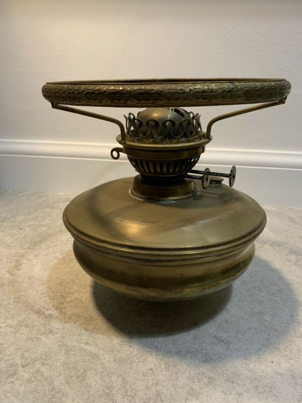 Title (ebay affiliate link): Antique BRASS OIL LAMP DOUBLE WICK BURNER & GALLERY & FONT & SHADE HOLDER Parts