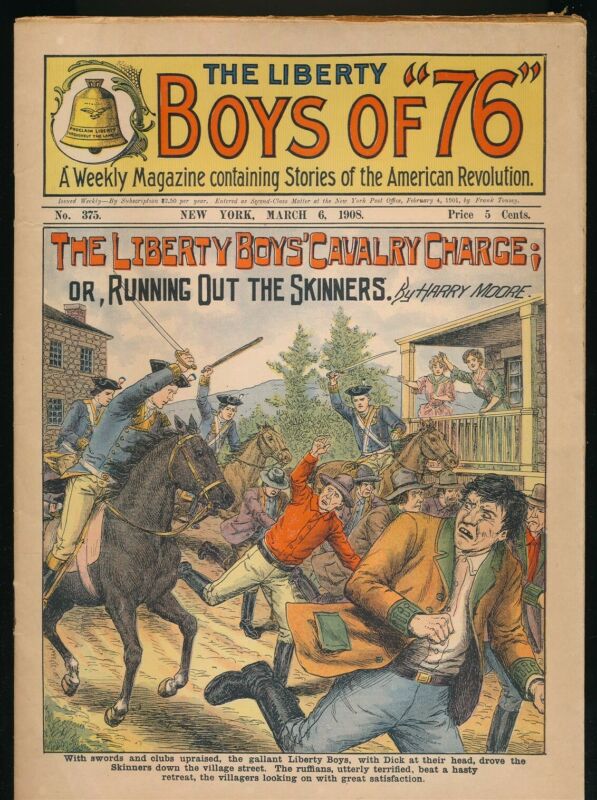 Title (ebay affiliate link): The LIBERTY BOYS of "76" No. 375 March 6, 1908 Dime Novel CAVALRY CHARGE Fine
