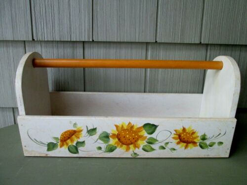 Vintage large Wooden Tool Garden Caddy Tote Rustic Wood Decor Sunflower Shabby