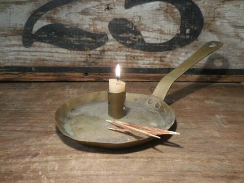 Title (ebay affiliate link): AAFA 18th c Candle Holder Antique Brass Pan Handle Lamp Chamberstick
