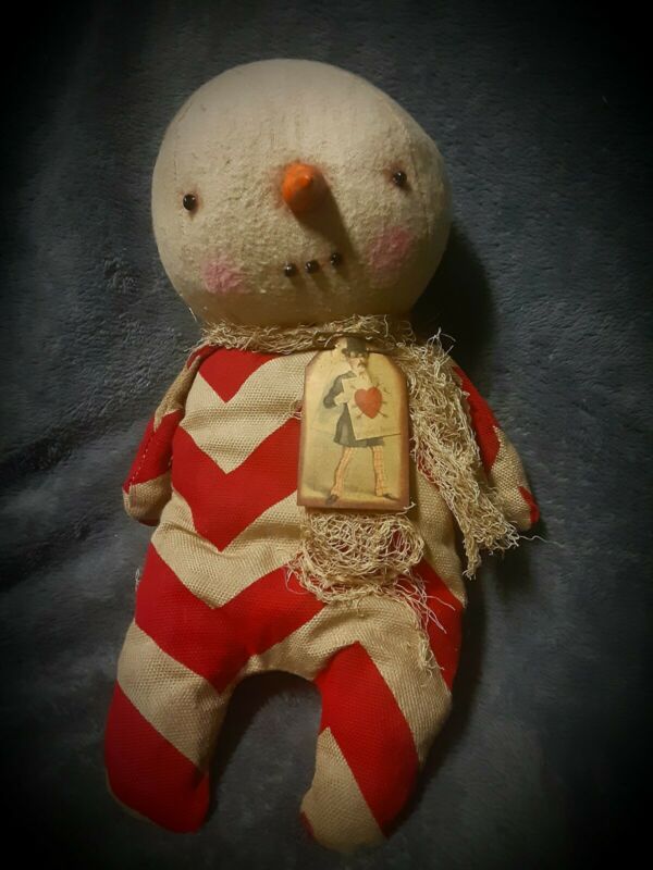 Primitive Rag Stuffed Valentine''s Snowman 125 ~Mountain Holler Prims~