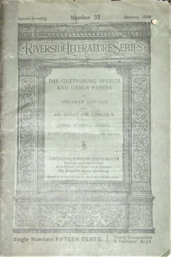 Title (ebay affiliate link): The Gettysburg Speech and Other Papers 1888 James Russell Lowell Riverside 1st
