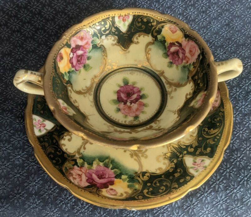 Lovely Antique Roses Gold trim 2 handed hp Tea Cup & Saucer !