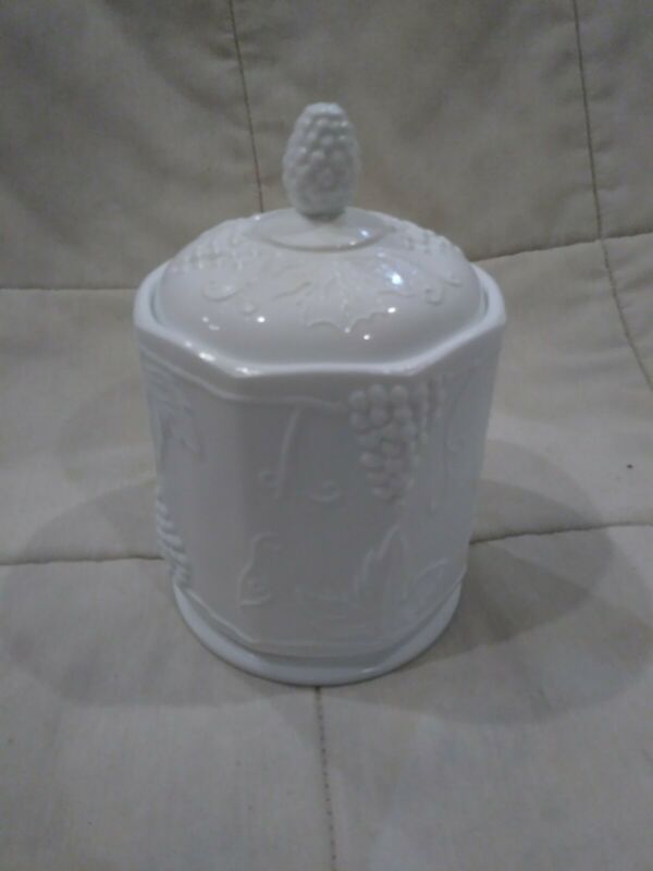 Vintage Milk Glass Grape Pattern Biscuit Jar