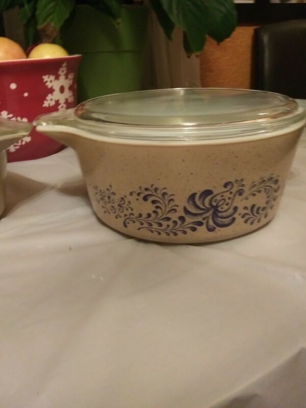 (3) Vintage PYREX Cinderella HOMESTEAD Blue & Tan Nesting Mixing Bowls and Lids