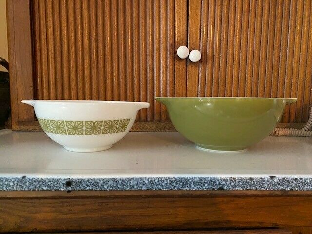 Vintage Pyrex Green Square Flowers Cinderella Bowl #443 and #442